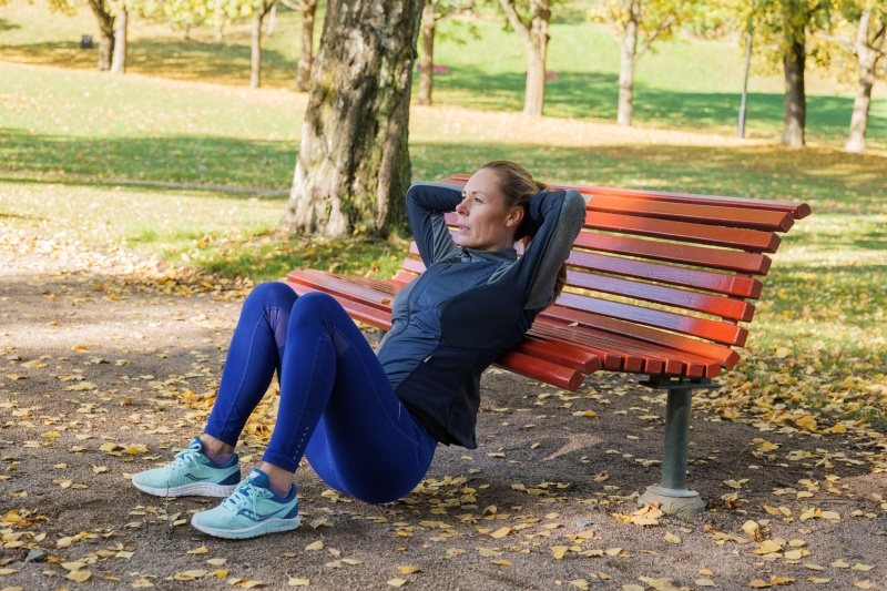 Under finner du åtte øvelser som du kan utføre på en benk. Det vil ta deg omtrent 25 minutter å utføre denne økta i sin helhet. Dersom du ønsker å korte ned økta, kan du for eksempel velge å kun gjøre øvelsene for beina eller kun øvelsene for overkroppen.